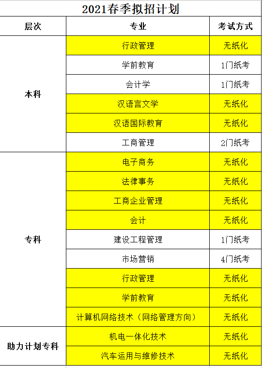 (2)“一村一名大學生計劃”專業主要面向高中(含職高、中專、技校)畢業的農村青年。